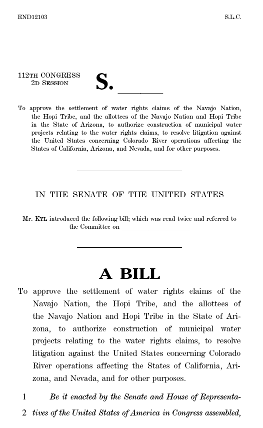 “S.2109 – Navajo-Hopi Little Colorado River Rights Settlement Act of 2012”